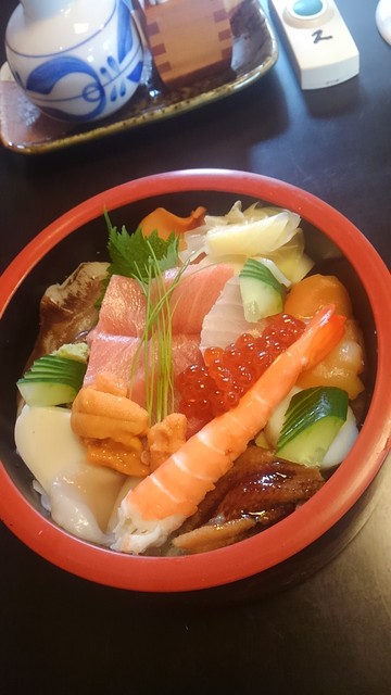 お店自慢の窯で炊いたシャリにこちらも自信がある玉子をまぜて上に各種魚介、にぎりと同じくお椀付き