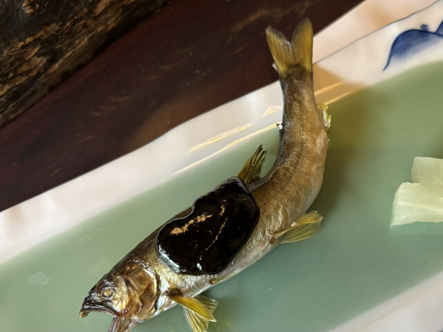 塩焼きを食べ終わる頃には鮎に味噌が塗られて田楽が登場するのですが、この連続技には痺れます。