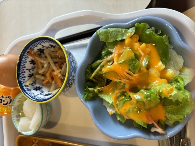 サラダもシャキシャキ、小鉢のひじきに小さなフルーツもありとても美味しく頂きました。