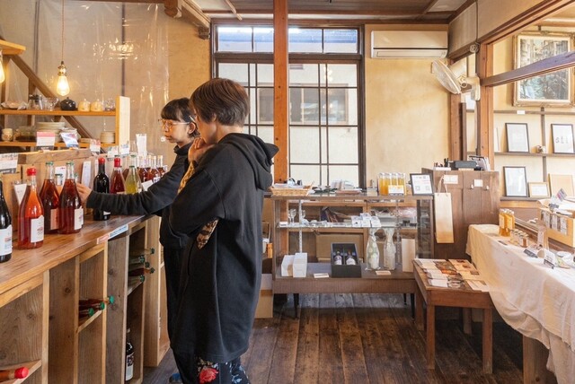 古いお宅の1階前面がまるっと店舗。庭にはオリーブの木がそよそよと