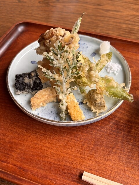 久しぶりに高知県にきました。高知市中心地から車で約1時間半くらいにあるにこ淵を観てからそこから更に車で約30-40分くらい山沿いの道を行き山間にあります。天ざるそばを注文しました。2100円です。お野菜の天ぷらはとても美味しく、お蕎麦はコシがあり手打ちを感じる事ができました。仕上げに蕎麦湯もどろっとした感じがとても良です。更に良いのが景色です。吉野川の上流域に位置するらしく水が透き通っています。マイナスイオン満載のお店で蕎麦を食するのは最高です。