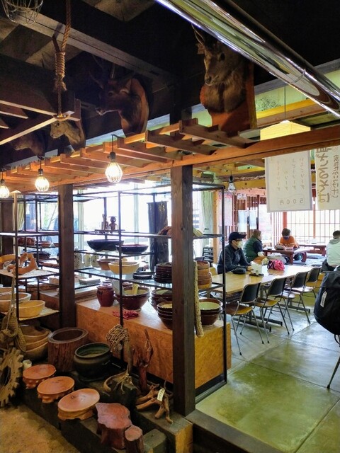店内を覗くと土産物が売られていて、よくよく見渡すと蕎麦を筆頭にご飯ものが食べれる様子。