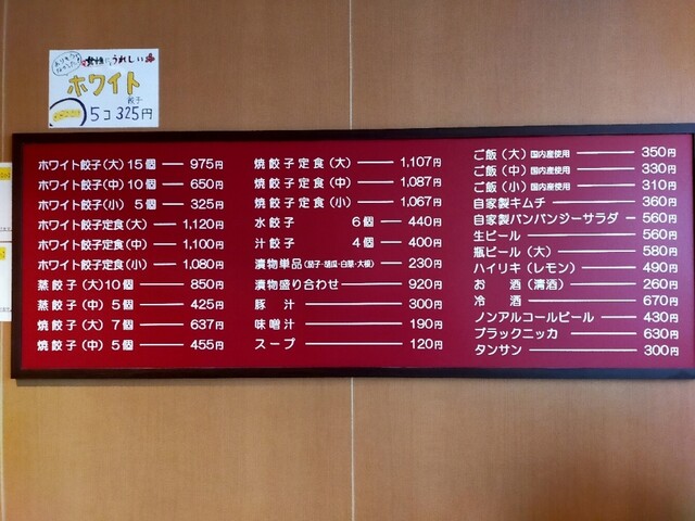 私も相方もホワイト餃子定食(中)1100円を注文。
