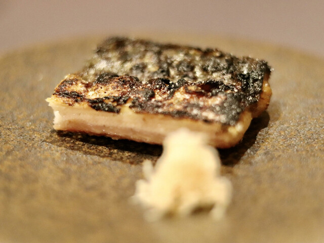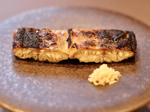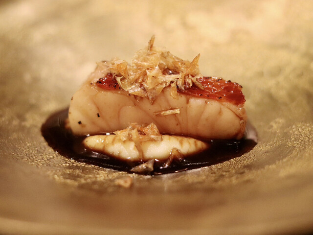 金目鯛は鰹ベースの蜂蜜入り魚醤と共に煮揚げ