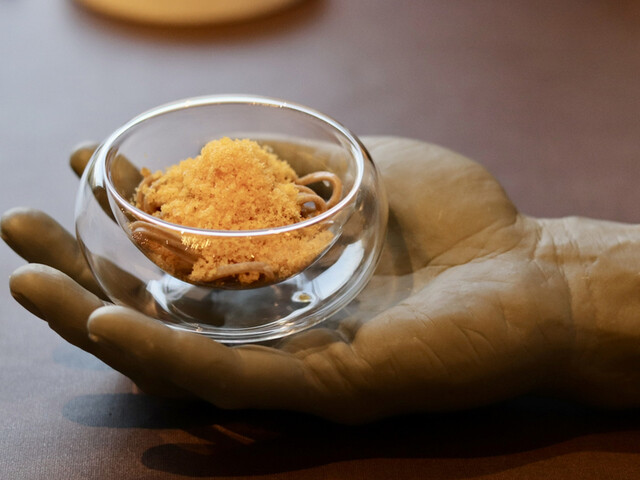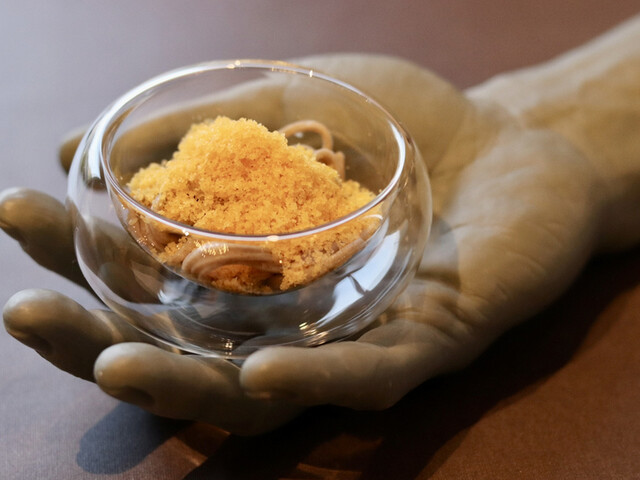 軍鶏卵黄の塩漬け乾燥を振りかけて完成!