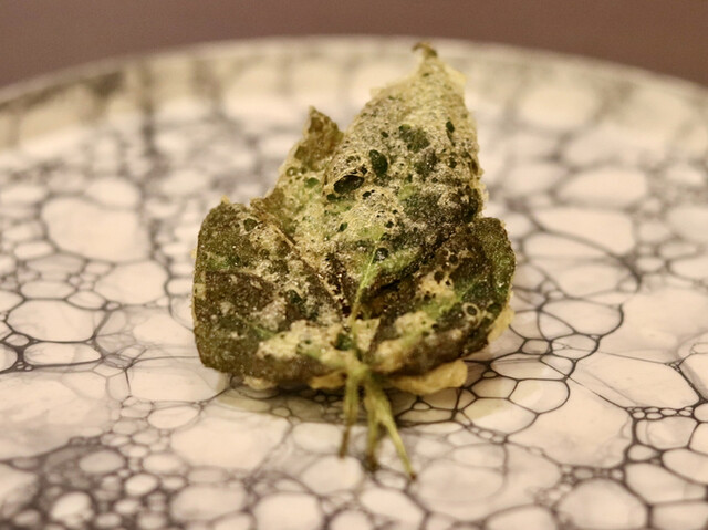 ニワトコの木の新芽のフリットはサクッサクッで塩味が最高!!