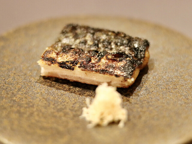 急速冷凍してから、薪で表面に火入れをして香ばしく仕上げ。