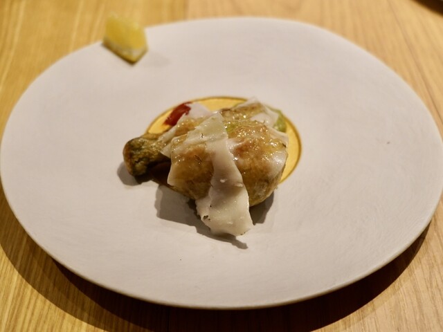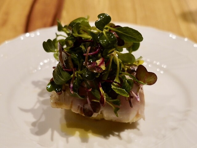 甘夏・うるい・ディル・蕪の葉と身を使ったソースと共に。