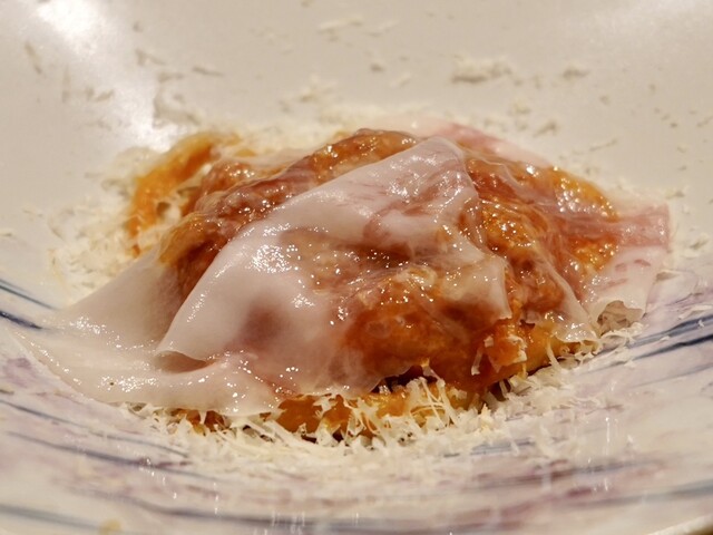 海老芋のほっくり感、パルミジャーノの濃厚な風味が