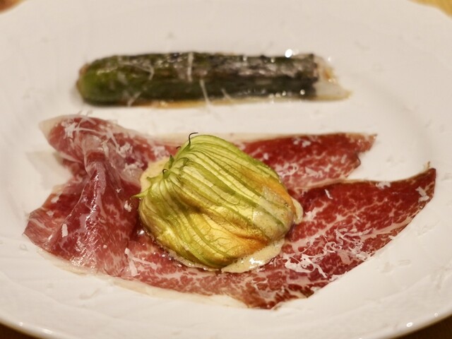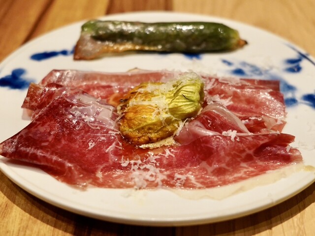 ◇海老芋 短角牛生ハム パルミジャーノレジャーノ