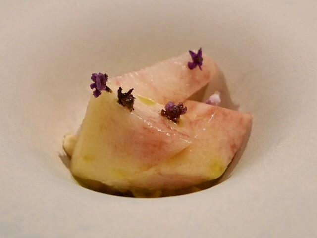 帆立・ブラータチーズ・仕上げにバーベナペッパー。