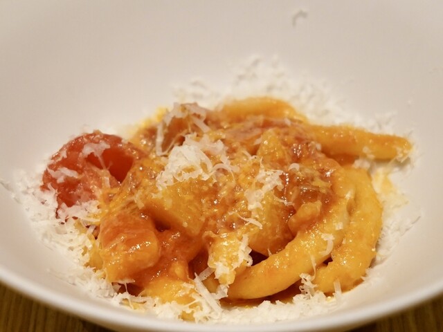 トマトのピリッとした辛味と酸味、グアンチャーレの