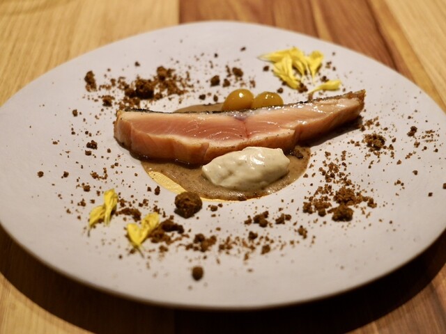 菊芋ピューレ・マカダミアナッツローストと共に。