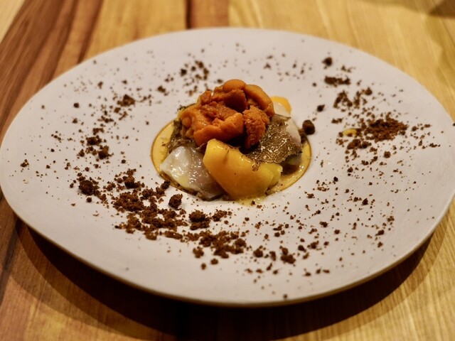 ウニ・ブラータチーズ・プロヴォローネチーズのクレマと共に。