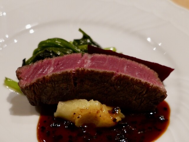 マデラトリュフソース・ビーツ・熟成メークイン・ホウレン草。