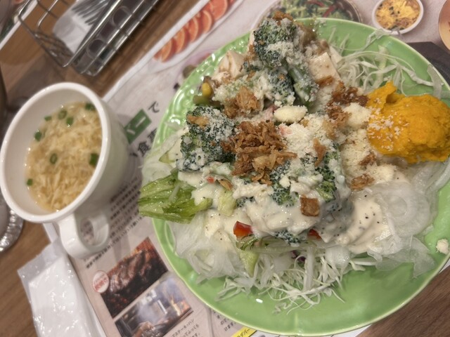 #ブランコビリー太田店 行ってみた ランチメニューが16時までとあり 昼時を避けたのに待ち時間があった サラダとランチメニュー もちろん ステーキ 柔らかくて美味しい サラダもフレッシュ 豆腐や野菜のマリネもあって 最後は手作りソースでデザート お腹いっぱい 店内も飽きない作り