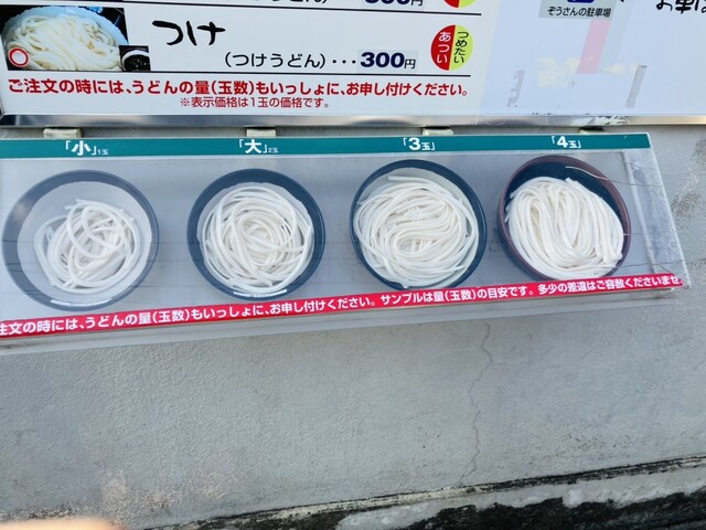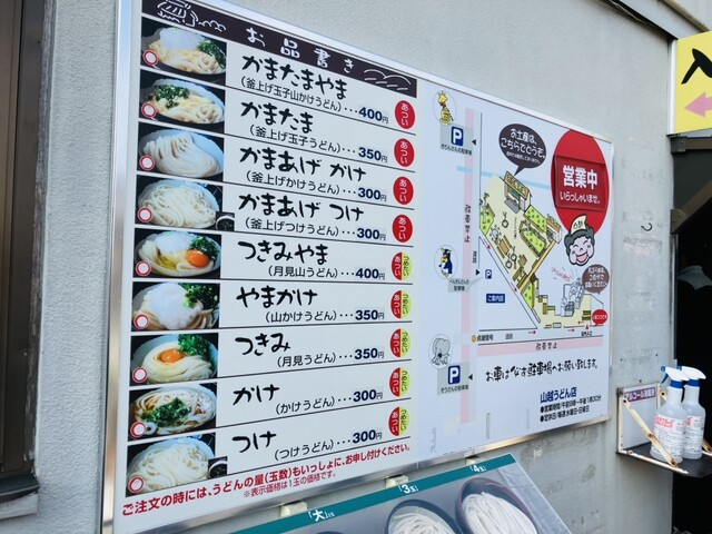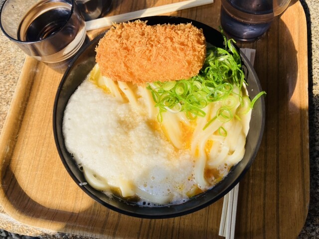 私と娘はかけうどん、夫は山かまたまうどんを。