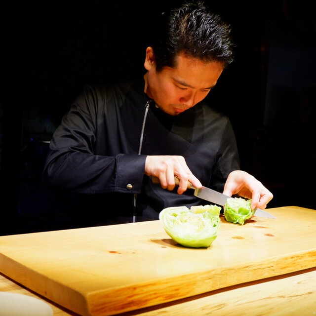 レタスには味のなく、食感を楽しむ野菜だとお考えのシェフは、