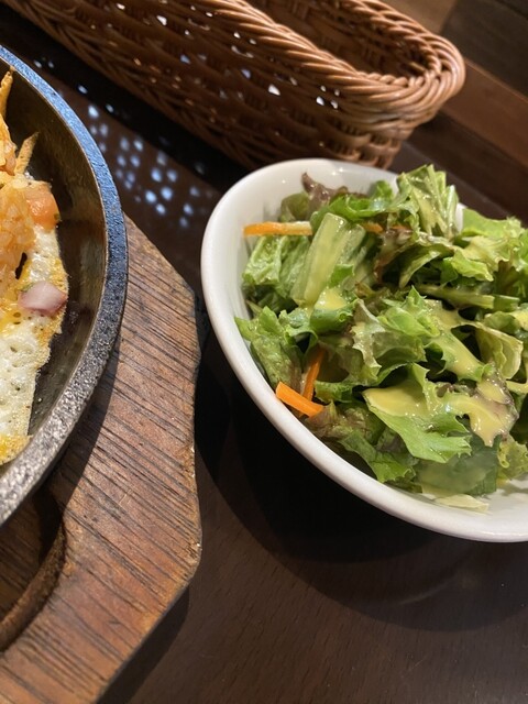 サラダのドレッシングもちょい甘だったりして美味しい。チキンと一緒でも合う。好き。