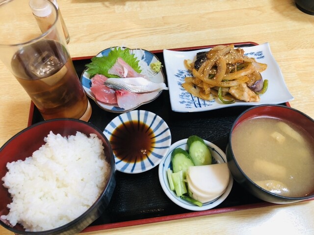 『男しゃく』さんのチキンバジルソテー刺身付定食