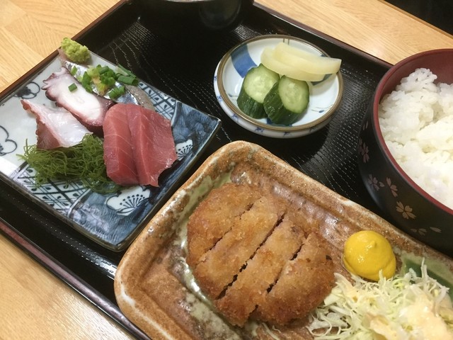 ♪厚切りハムカツと刺身付定食 ¥780