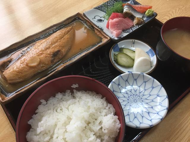 ♪さんまの開きと刺身付定食¥880