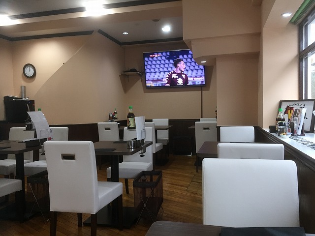 「大型テレビで、イタリアのサッカー。店内は、好きな感じの音楽が流れています。」