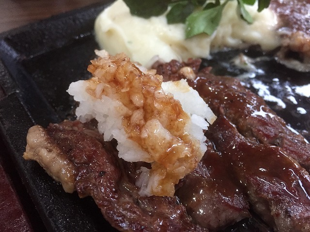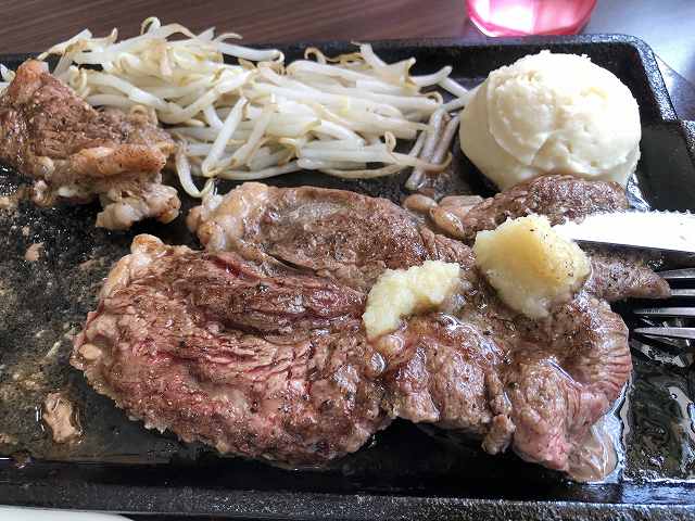 「と、思いながらも、グラム数に惹かれた私は、ランチステーキ300gを。」