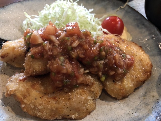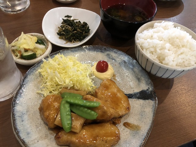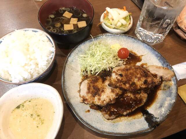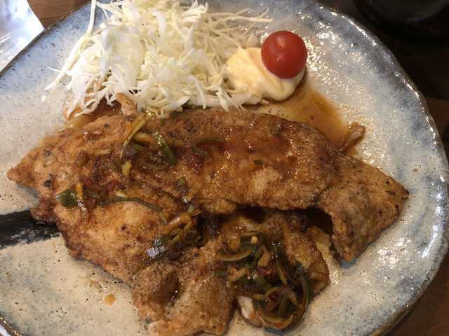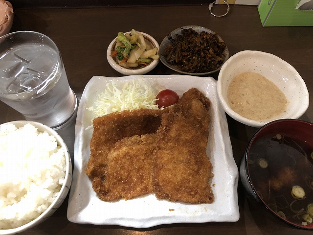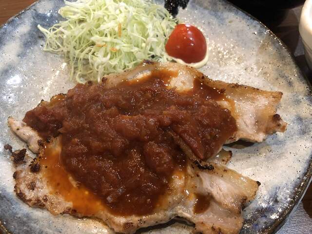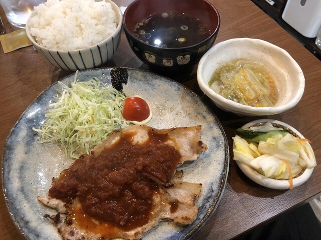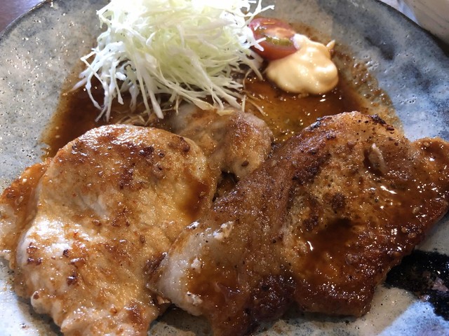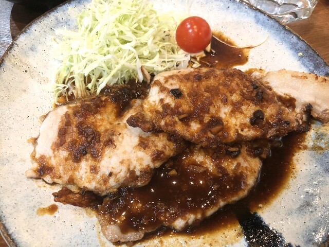 厚めの豚ロースはパリッと焼かれ、大根おろしとニンニクが効いたソースが、異常に白飯を加速させる心に残る一品となった。