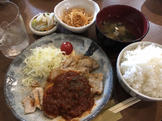 「今日の日替わりは、豚肉のトマトソースがけ定食!」