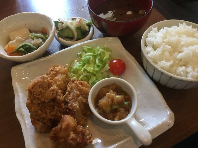 「絶品のおろしポン酢唐揚げ、白飯が抜群に合います。」