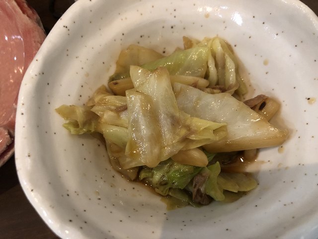 「白菜の煮浸し、豚肉も入っている。」