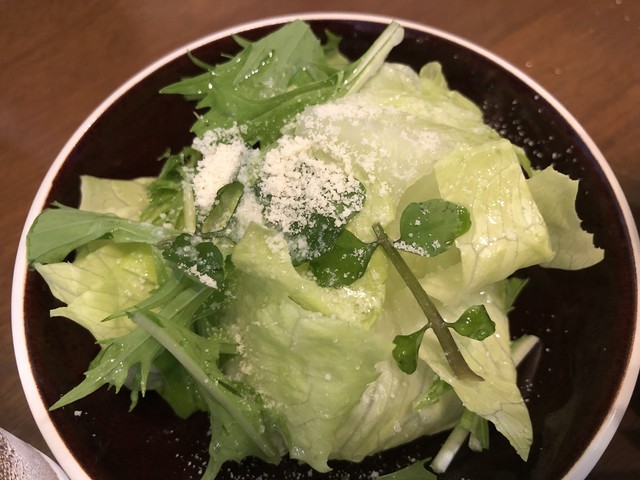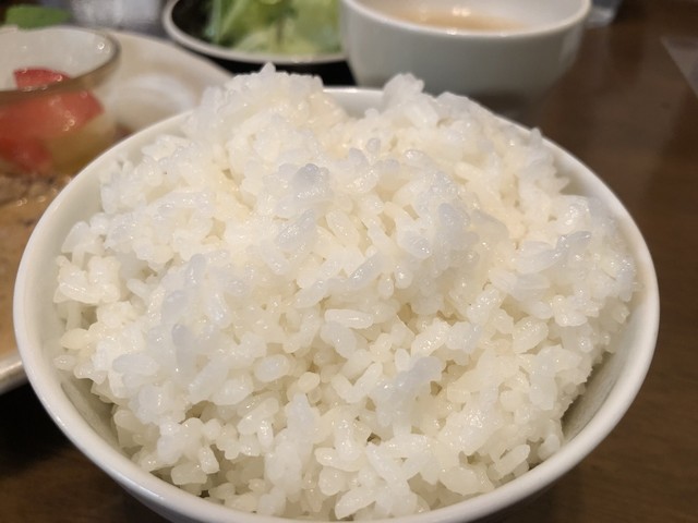 「サラダ、味噌汁、ライスの順でやってきた。」