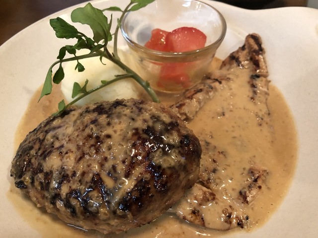 「私も、どうしてもジャポネソースハンバーグが食べたかったので、スパイシーチキンとのコンボを。」