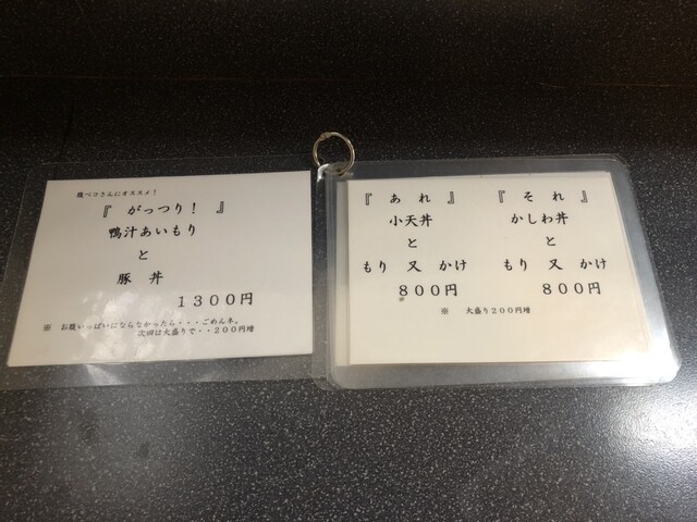 蕎麦が、あい盛り分しかなくなってしまってそれでよければとのこと