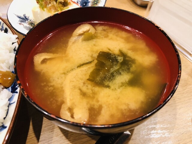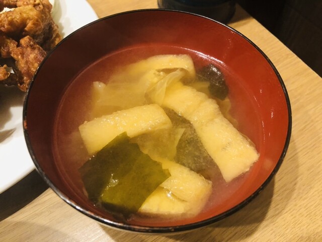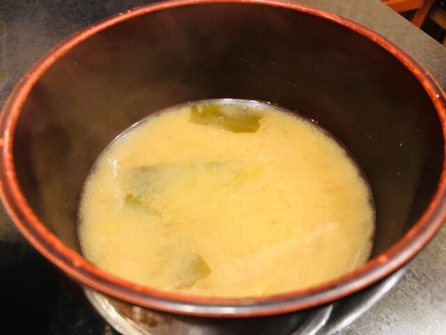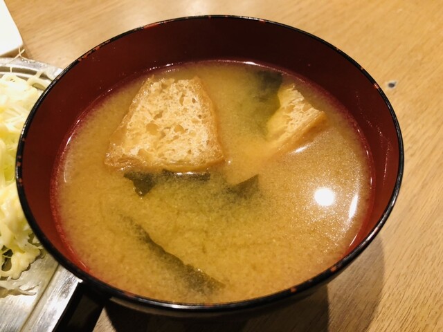 店員さんが笑顔で味噌汁と白飯を持ってくる