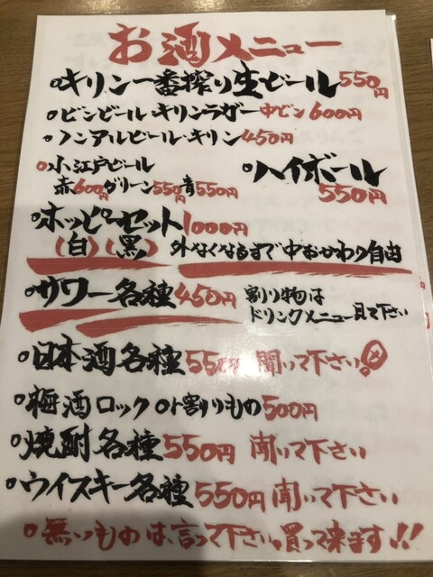 メニューのお付き合いは、お酒を飲む人と同席する方へのメッセージなのだろう