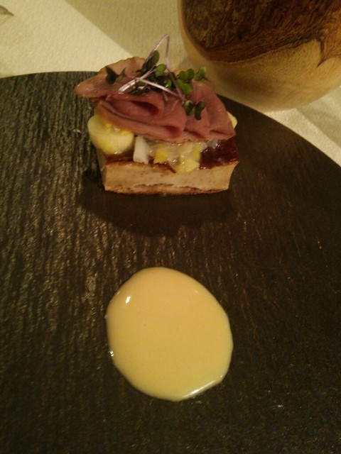 夕御飯は洋食で。お客が少ないからかテラス席でした。二時間半にも及びましたが、一皿一皿盛り付けもきれいで味の変化もあり楽しい夕食でした。