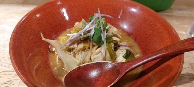 平日の夜でしたが、7割位のお客さんの入りでした。店員さんが一人なので少しゆっくりめにごはんが出てくる感じです。