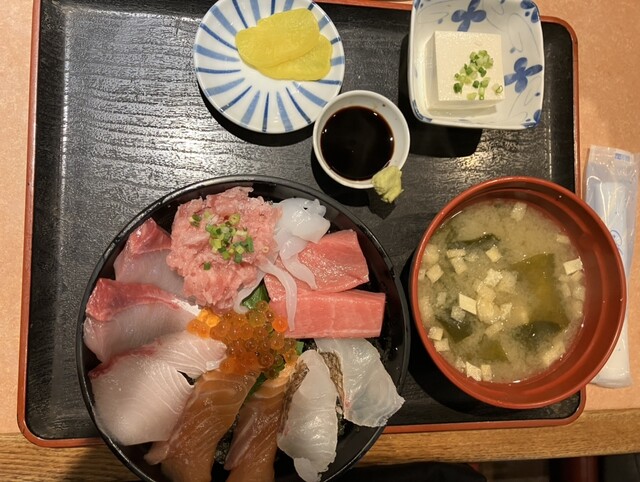 唐戸市場内で朝食を考え、行列につられ待つ事15分。店名と同じよし定食を注文。程なく出された定食の揚げ物はフグ唐とエビ天、刺身は鮭にハマチに鯛にイカとどれも新鮮で感動レベルの旨さ!妻の海鮮丼と娘の鮭イクラ丼のどれも美味しく、2,000円以下のお値打ち価格にも大満足。またいつの日か下関に来る事があれば、朝食は絶対にこちらで決まり♪