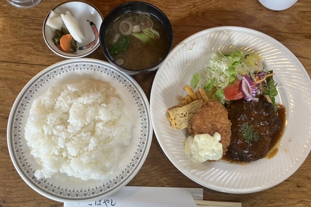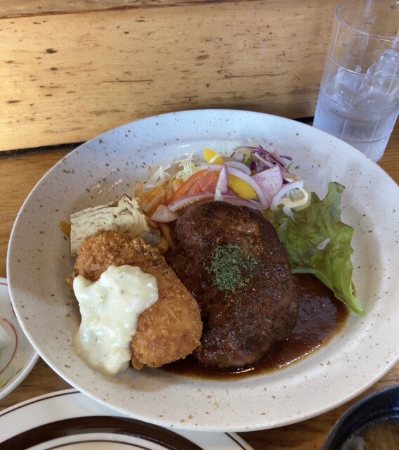 昨年11月の感動をまた味わいたくて、仕事で水戸に来た序でに再訪!評判の豚ロースステーキと悩ん挙句に結局またハンバーグとカニクリームコロッケセットをセレクト♪