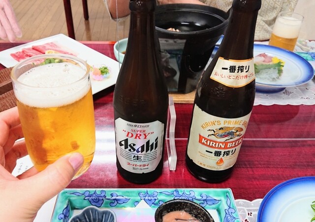 ドリンクは、瓶ビールや日本酒飲み比べ等をいただきました。