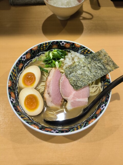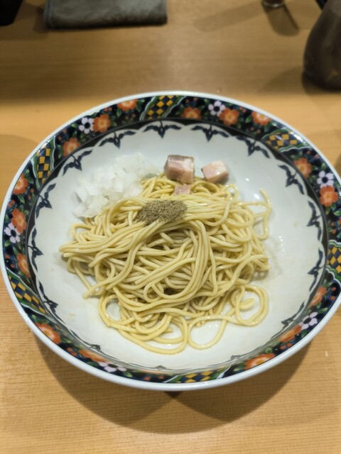 1口目から煮干しをガツンと感じます。結構醤油ダレ強め。塩分濃度濃いね〜〜という第一印象