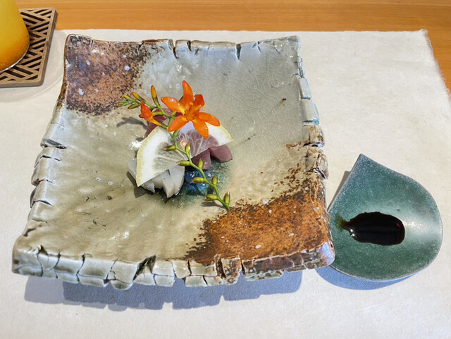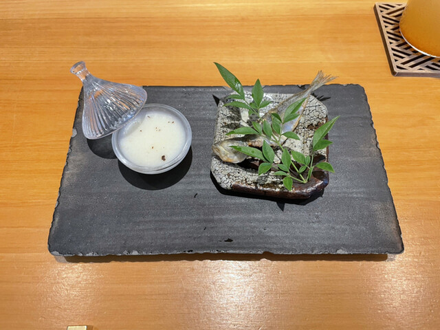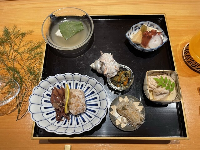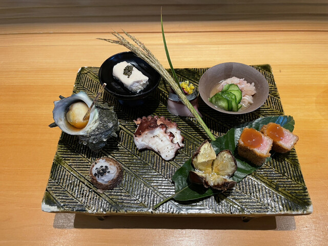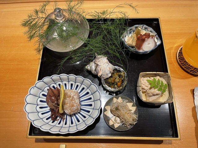 7月は七夕メニューで、八寸に短冊がかかった笹の葉をイメージしたそうめんがありました。
