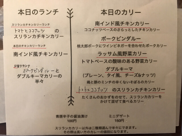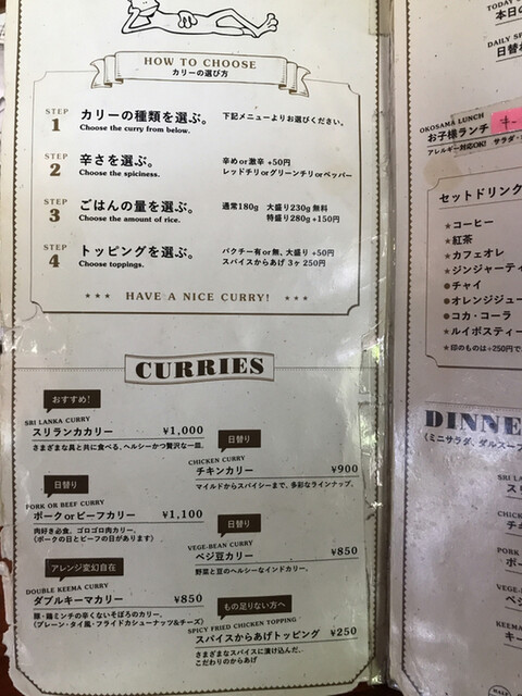 こちらのカレーはジャバジャバ系のスパイスカリーで、ラインナップはスリランカカリーを筆頭に、
