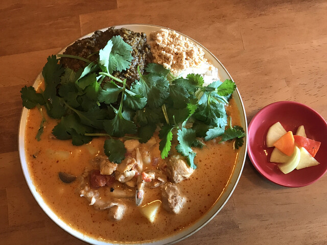 私はマッサマンカレー(チキン)に鹿キーマをトッピングしての注文。