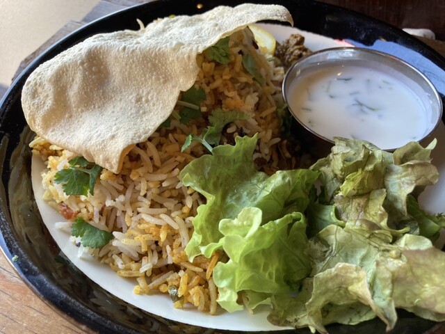 ビリヤニはライスに色ムラがあるので、炊き込みではなく混ぜご飯のようです。