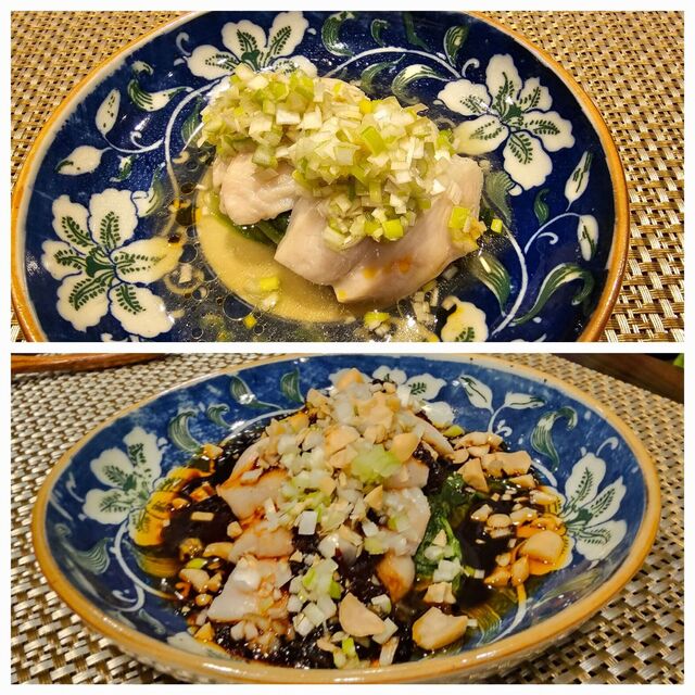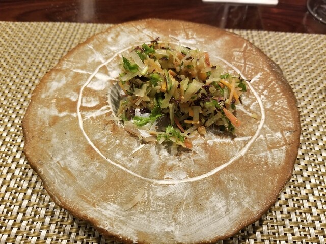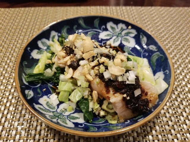 魚料理やサラダ的な物は、混ぜる前に一回見せてくれます。お料理を乗せる器も凝っていました。