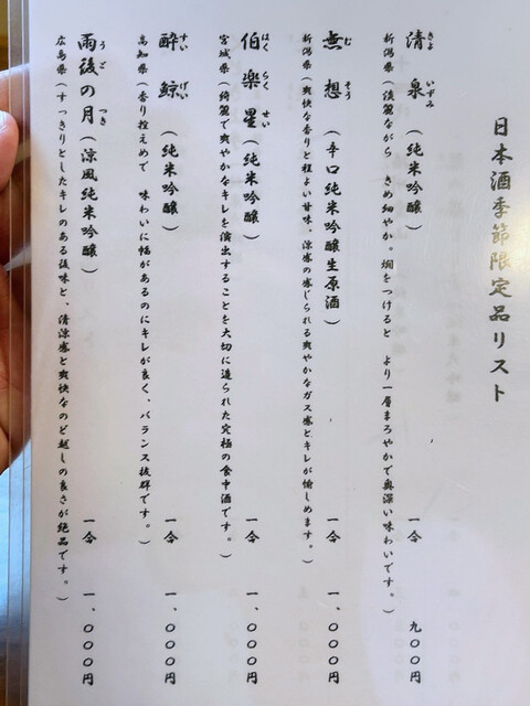 〇 伯楽星 純米吟醸(一合) 1,000円