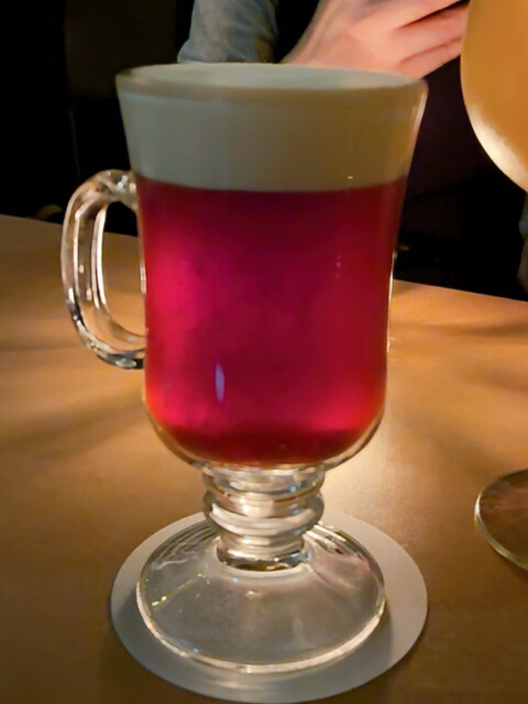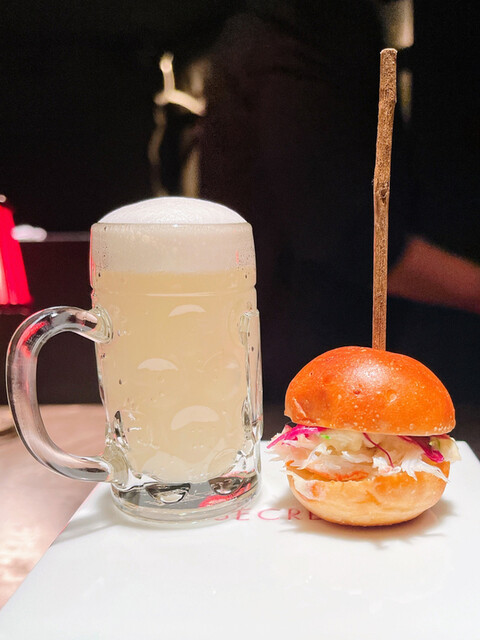 ビール瓶に注がれた、見た目はビールのオリジナルカクテル。